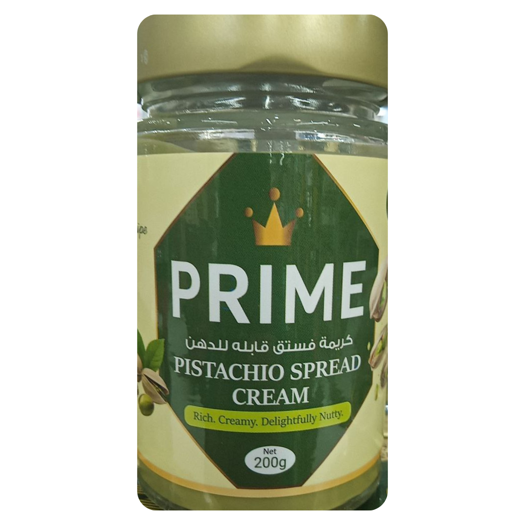 Prime Pistachio Spread Cream is a rich and velvety nut spread made with premium pistachios for a naturally sweet and creamy taste. Perfect for toast, pastries, or desserts, it offers a luxurious nutty flavor in every spoonful.