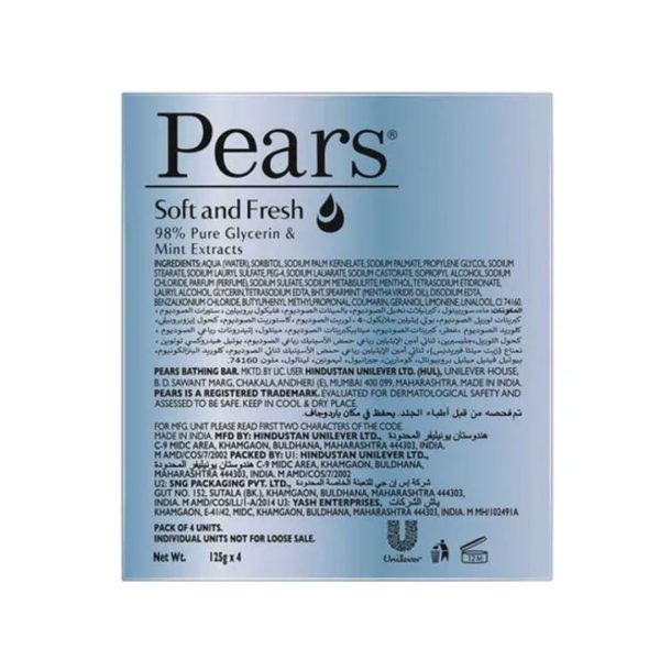 Pears Soft & Fresh Bathing Soap Bar Pack of 4, 125g